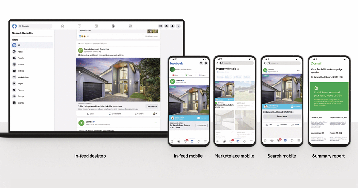 Social Boost combines the power of Domain data and Facebook’s expansive reach. This allows us to target buyers with the demographics and behaviour that indicate an interest and intent to purchase property, and extend your campaign’s reach.
